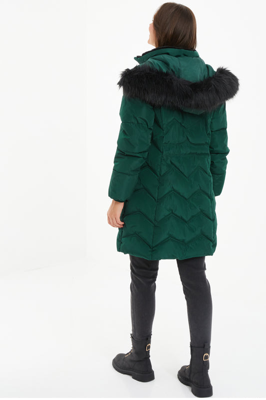 Bottle Green Padded Fur Hood Parka