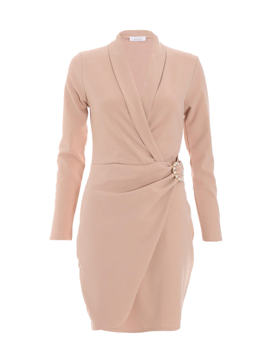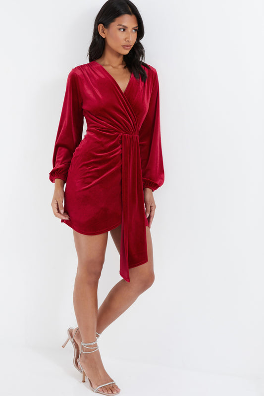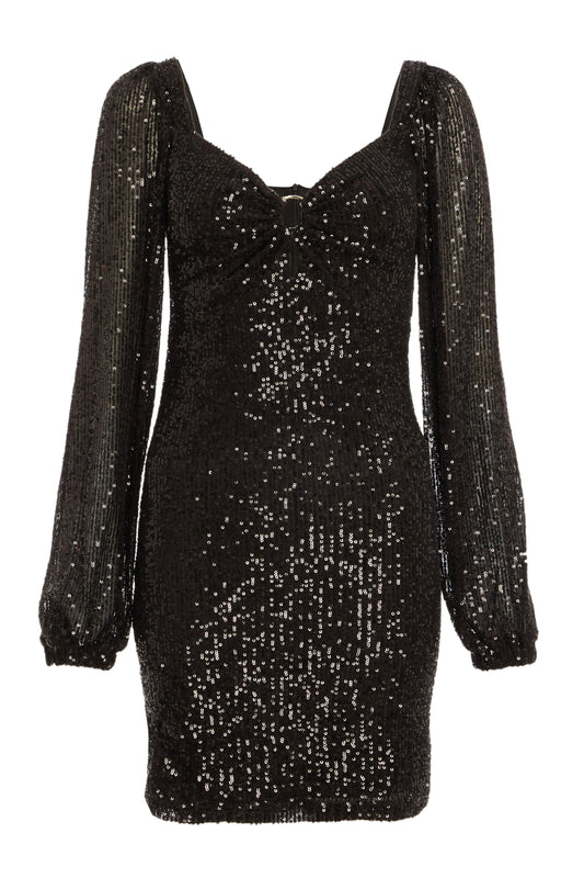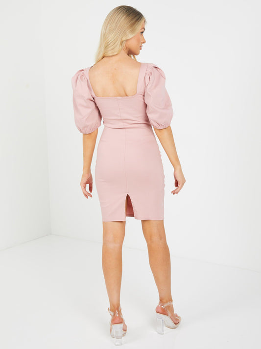 Blesh Knit Front Puff Sleeve Bodycon Dress