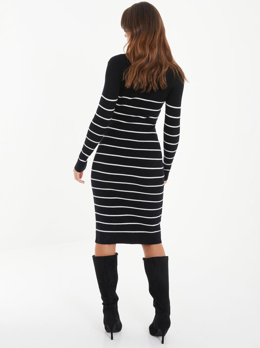 Brown Knit Long Sleeve Bodycon Midi Dress