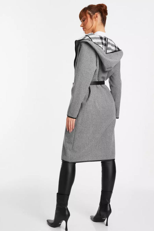 Sold outGrey Check Print Belted Coat