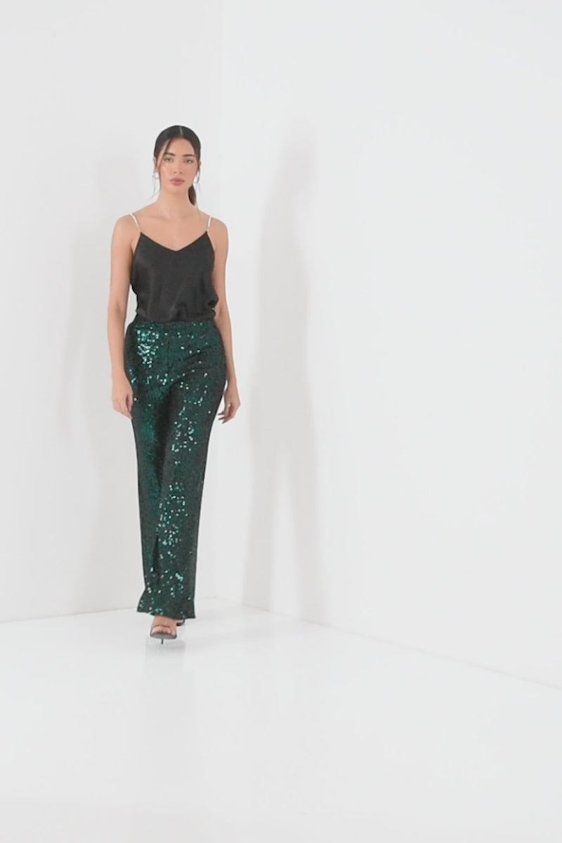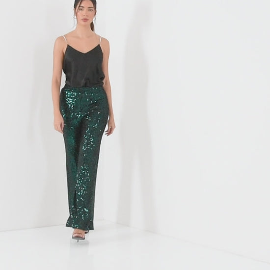 Bottle Green Sequin High Waist Trouser