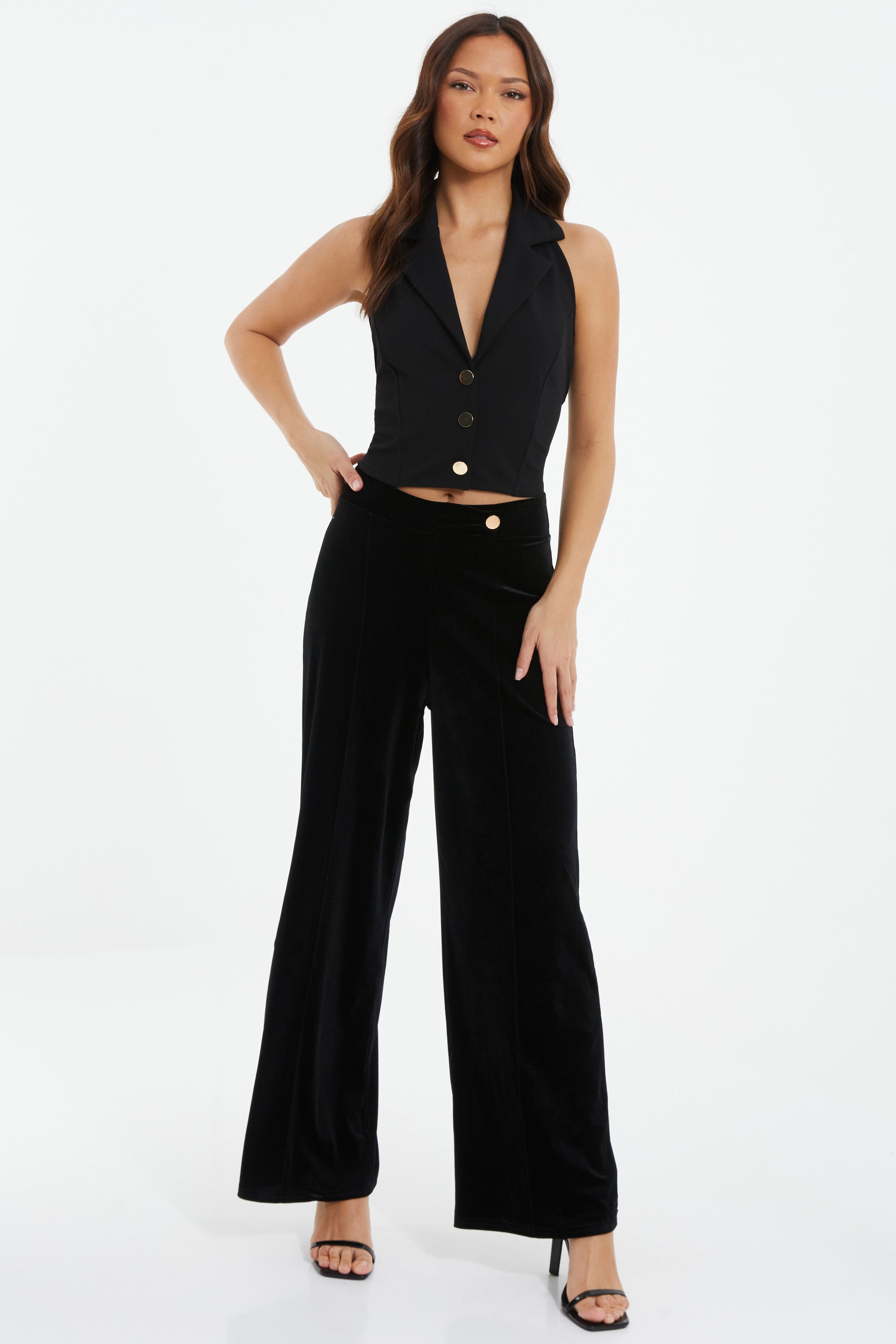 | BLACK VELVET BUTTON DTL PALAZZO TRO |