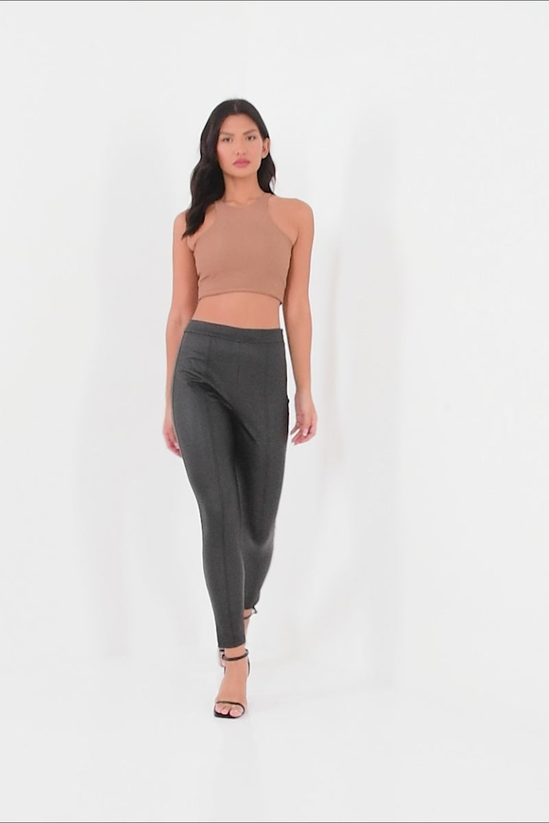 | BLK PU SEAM DTL ZIP SIDE LEGGING |