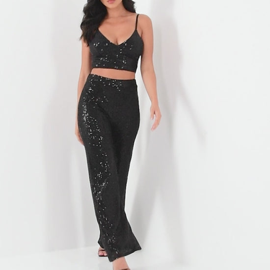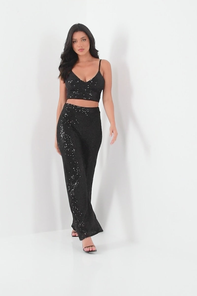 Black Sequin High Waist Palazzo Trousers