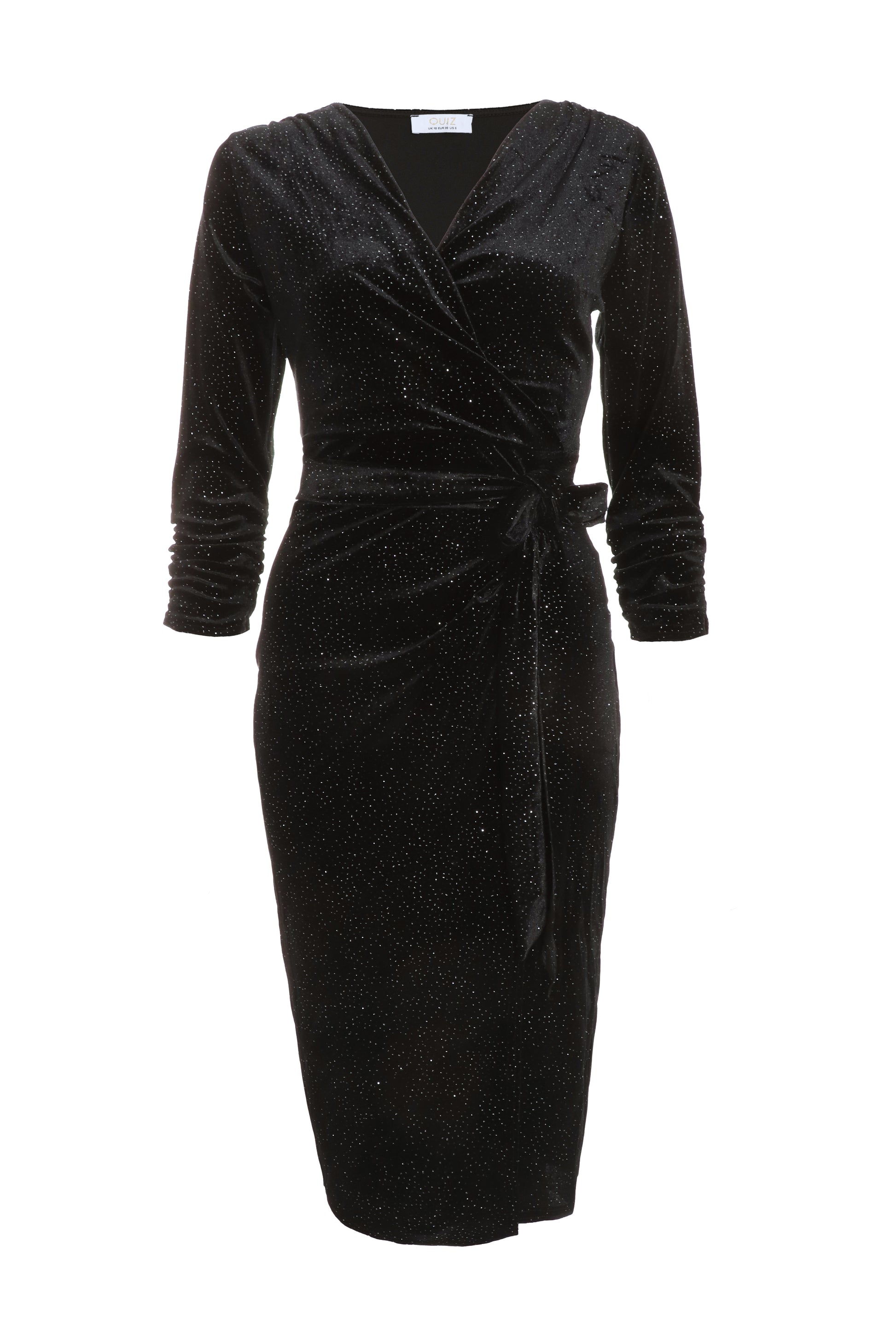 Black Velvet Glitter Long Sleeve Midi Wrap Dress
