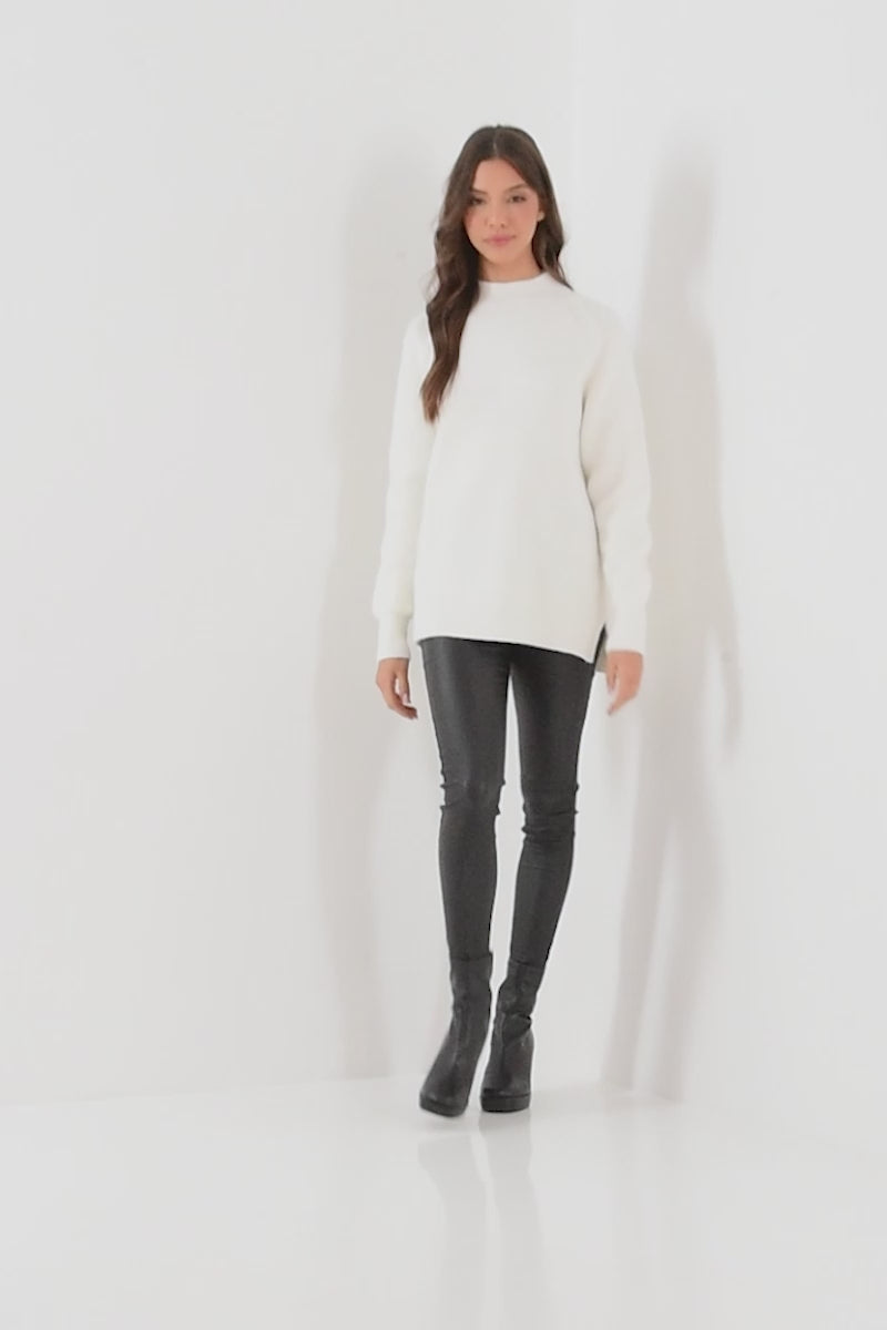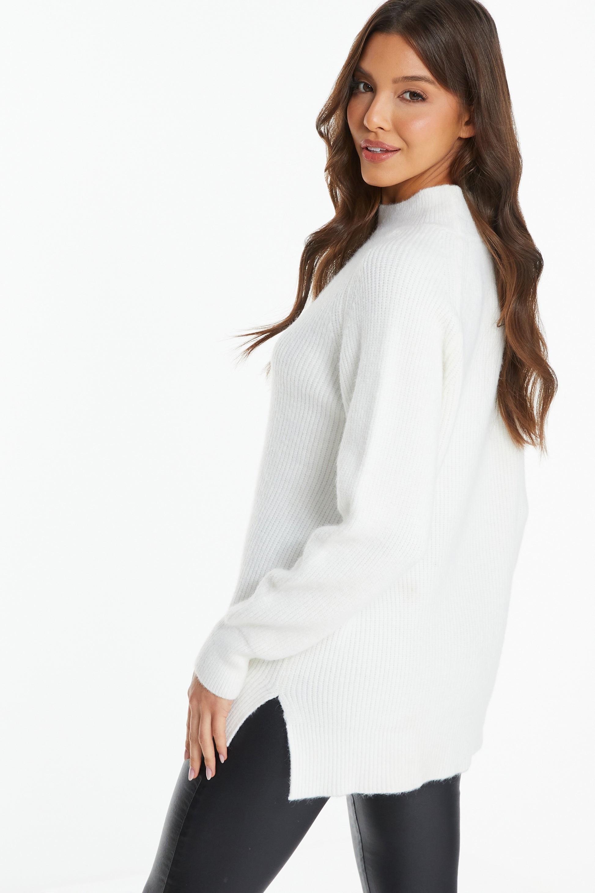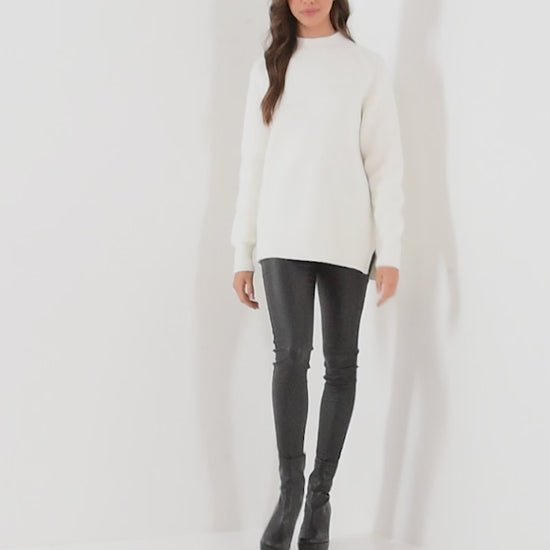 Cream Fluffy Knit High Neck Long Sleeve Jumper
