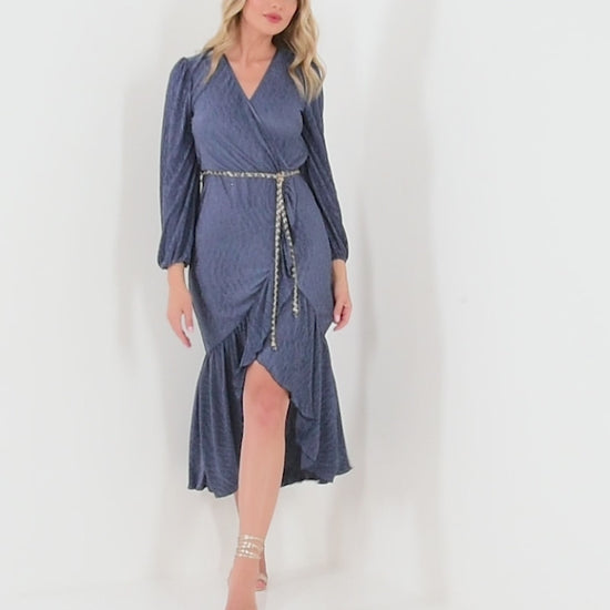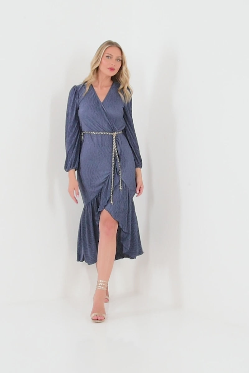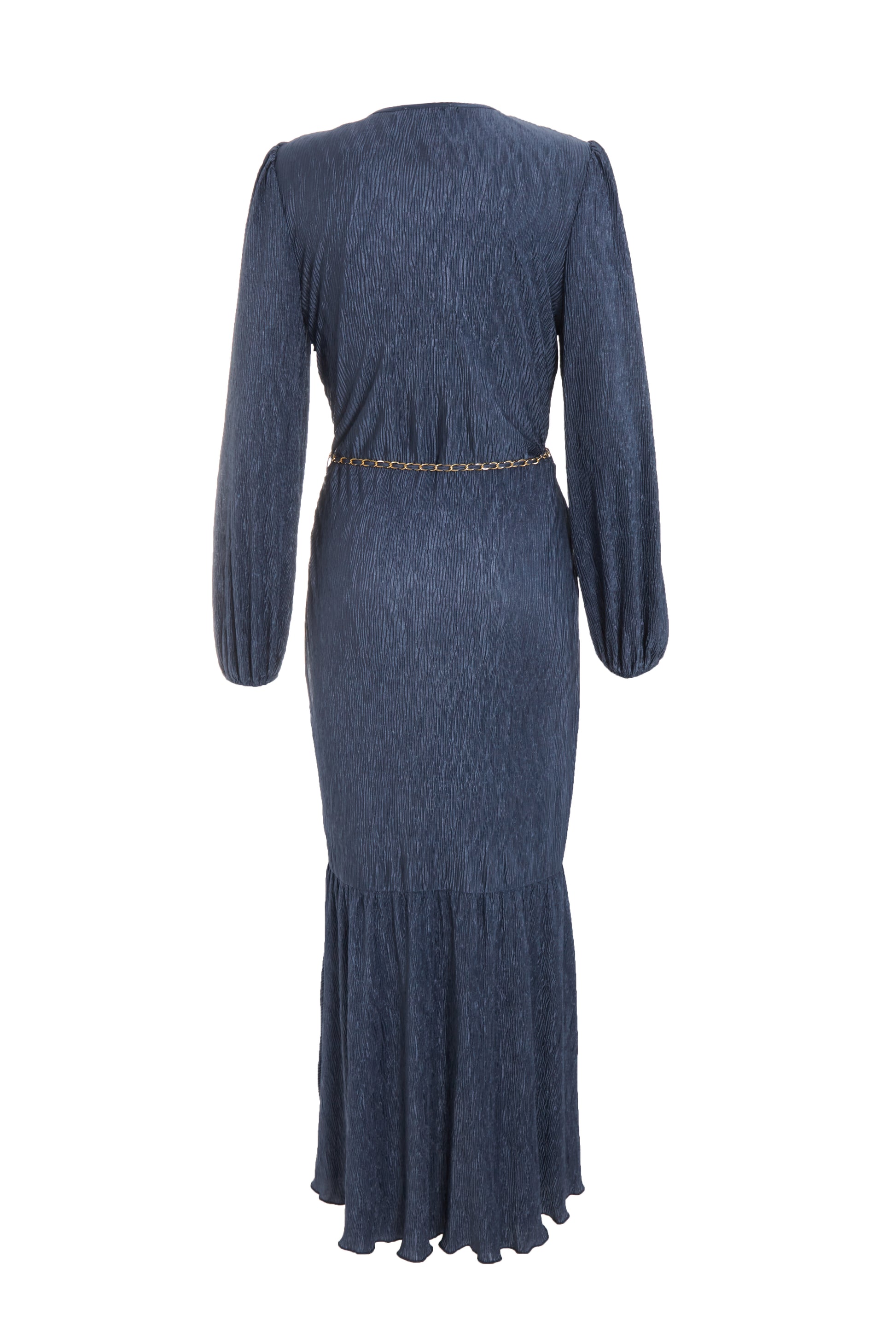Dark Blue Plisse Wrap Chain Dress
