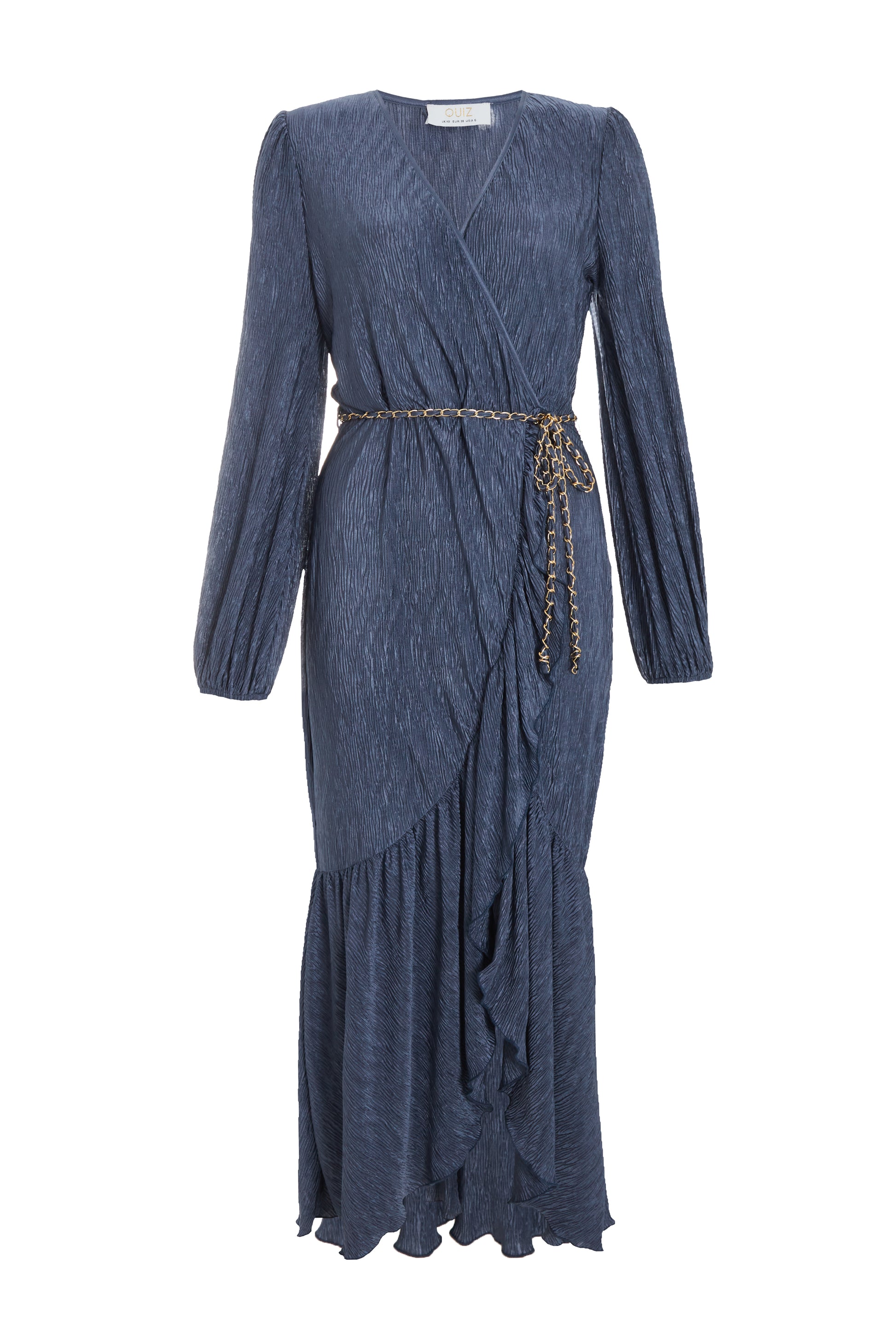 | D.BLU PLISE WRP CHN BLT L.SLV FRL M |