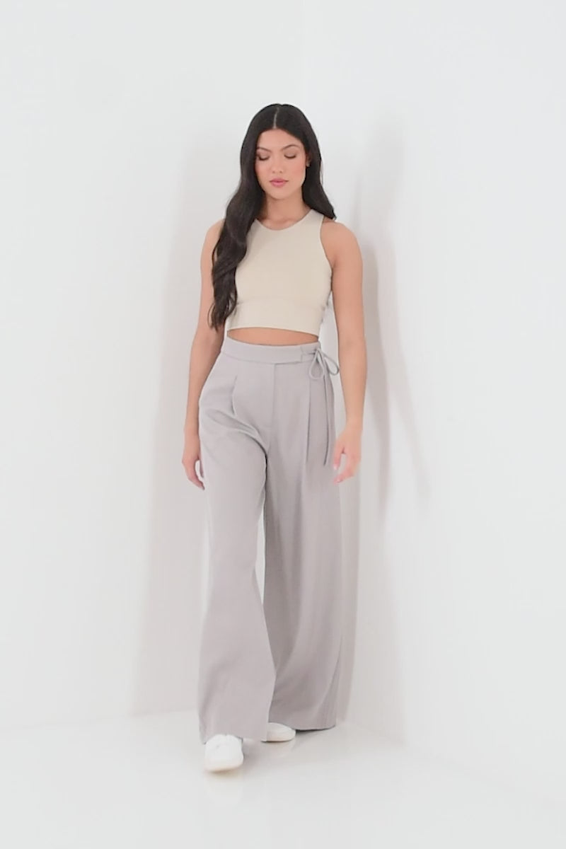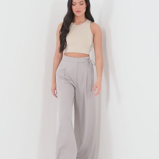 Grey Woven High Waist Trousers