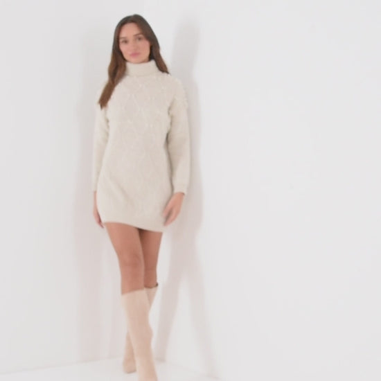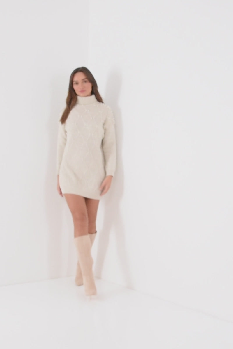 Stone Knit Pearl Detail LSL Turtle Neck Jumper